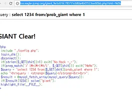 $query=" select 1234 from{$_GET[shit]}prob_gaint where 1";