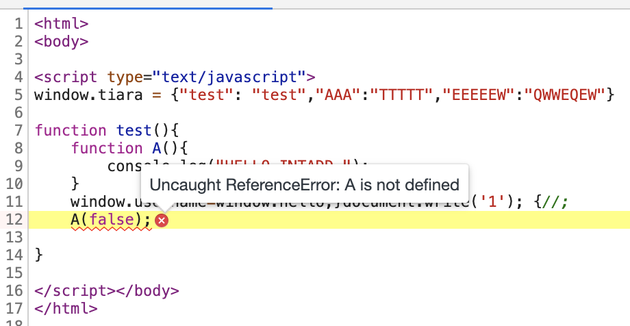 (TMI, A함수는, test() 함수 안에 있기 때문에 A()가 정의되지 않았다고 하는 겁니다. )