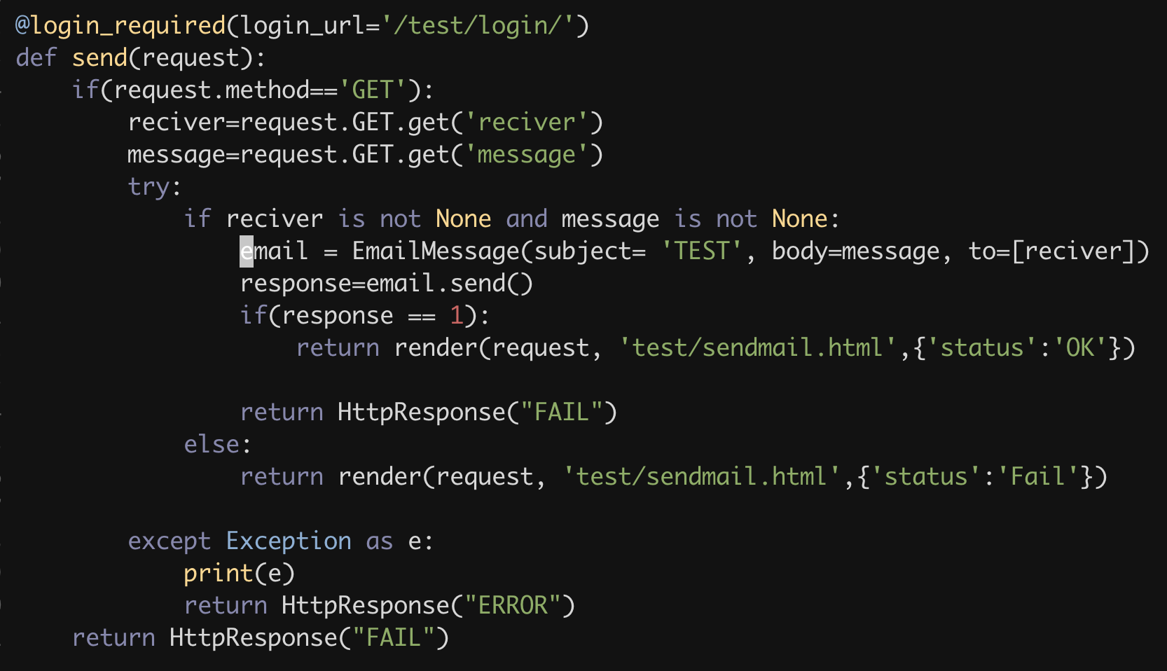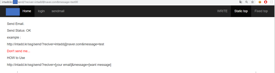 GET 파라미터를 통해 원하는 메시지를 메일로 전송하는 기능을 하나 만들어 줍니다.