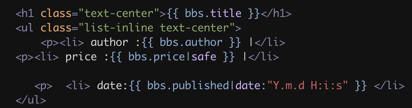price 에 데이이터를 출력해줄 때, |safe 옵션을 주면, html encode 처리를 하지 않습니다.