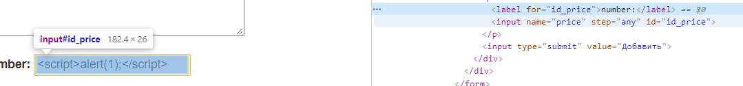 개발자 도구를 통해 해당 INPUT TAG의 속성을 지운 뒤, number(price) input 란에